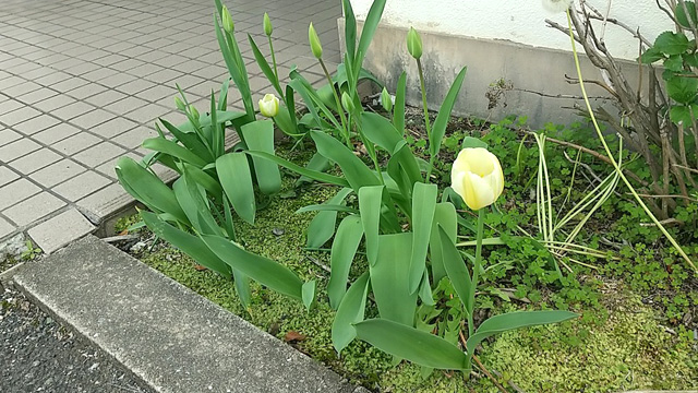 イナミ工場でチューリップとラベンダーとタンポポが開花しました。
